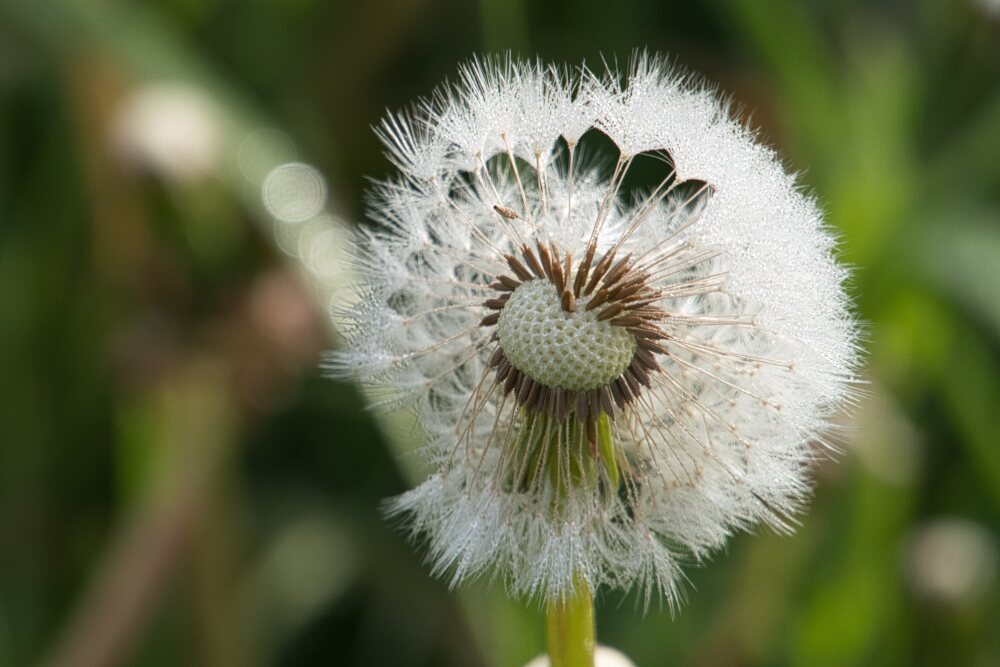 Im nächsten Schritt geschieht etwas Faszinierendes. Die Blüte vergeht nicht einfach, wie wir es von anderen Blumen gewohnt sind – sie verwandelt sich. Die Pusteblume entsteht. Ein filigranes Universum aus feinen Strukturen, bereit, sich im nächsten Windhauch aufzulösen. Was eben noch kraftvoll und dicht war, wird leicht und durchlässig.